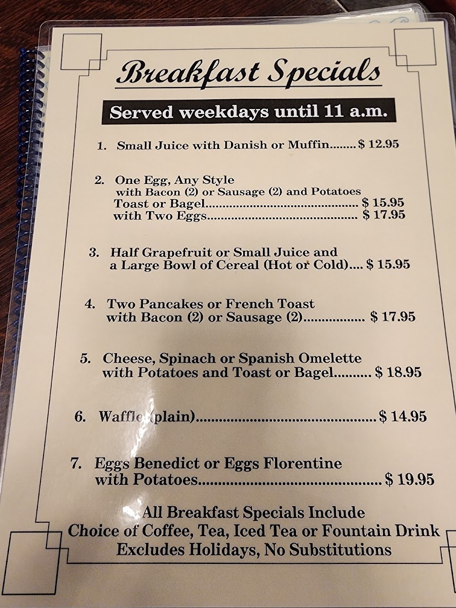 Blintzes & Hotcakes: A variety of sweet and savory breakfast options, including potato pancakes, classic French toast, buttermilk pancakes, and cheese or strawberry blintzes. Many dishes can be ordered with sides like bacon, sausage, or ham for a more substantial meal.